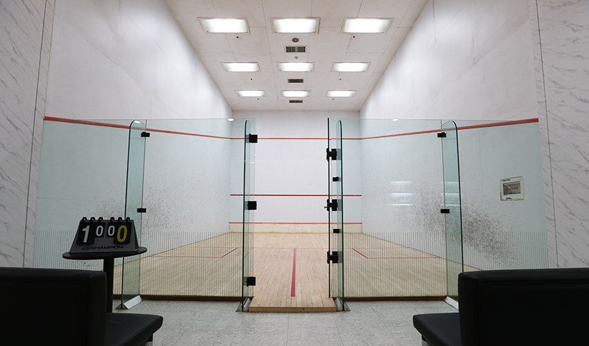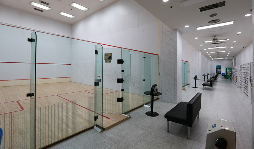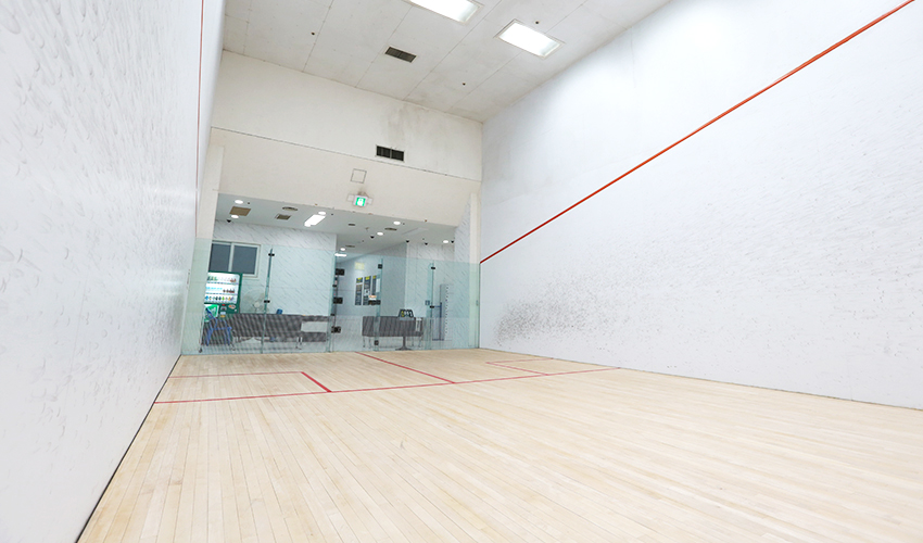 투명한 유리와 직육면체의 깨끗한 벽면으로 된 실내경기장에서 라켓으로 사방의 벽면을 이용하여 교대로 치는 경기입니다.